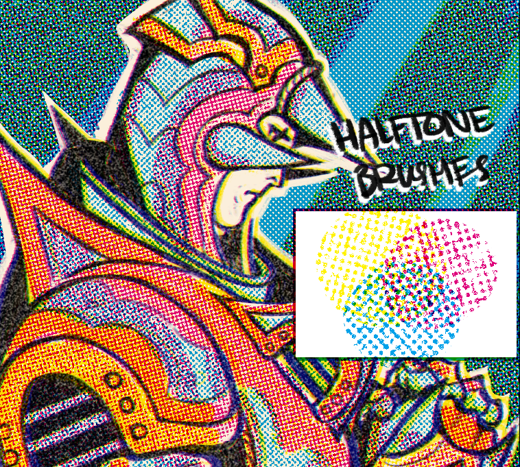 Featured in this download are the halftone brushes I used for the featured drawing of Artia (one of my characters).